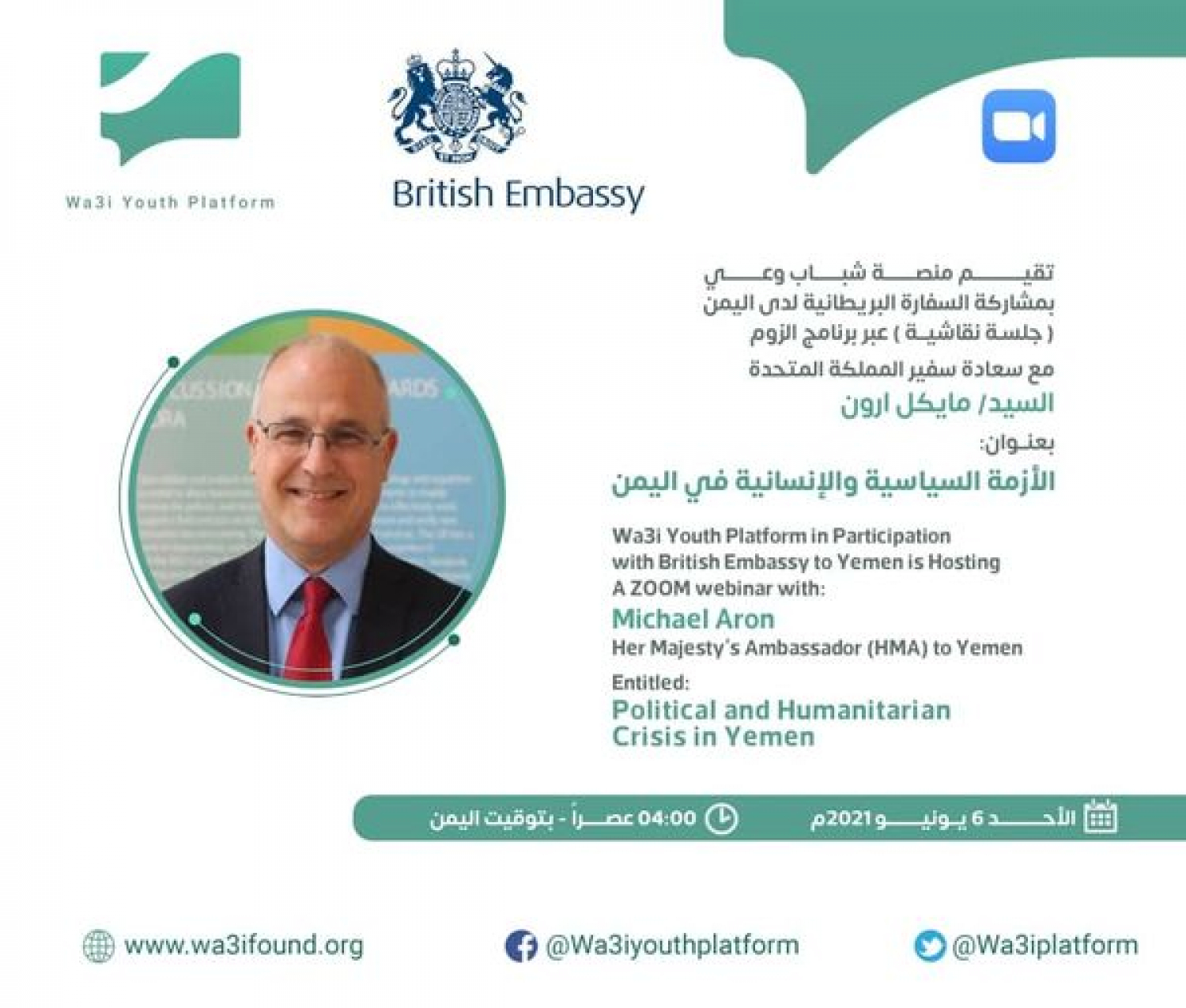 Wa3i Youth Platform in Participation with the British Embassy to Yemen is Hosting a ZOOM webinar with: