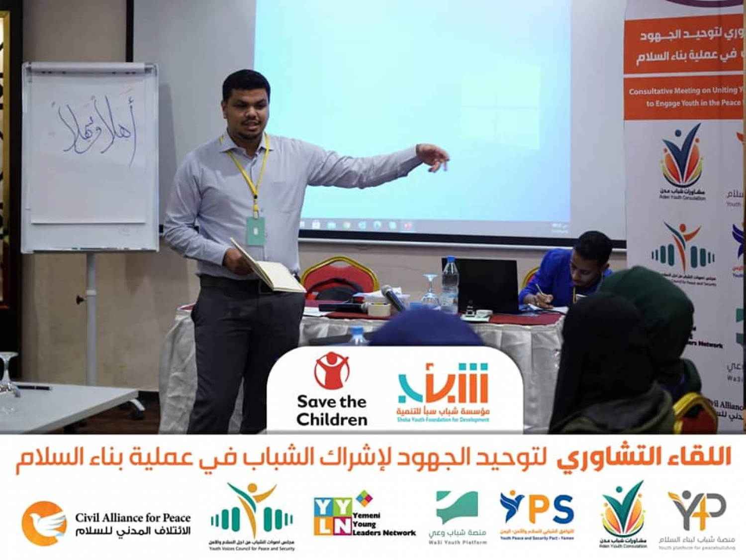 استمرار أعمال اللقطات التشاوري لتوحيد العرض في عملية بناء السلام ، لليوم الثاني على التوالي ، والذي تقيمه مؤسسة شباب سبأ ومنصة شباب لبناء السلام بتمويل من Save the childern MEEE