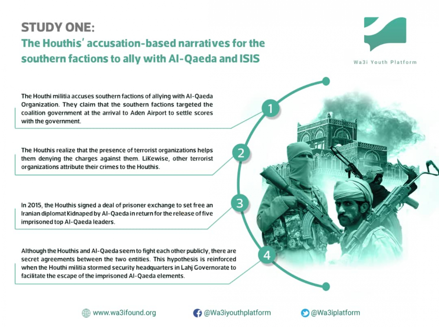 conducted to disclose the Houthi accusation-based narrative for the southern factions that they ally with Al-Qaeda and ISIS. Please click on the following link for the study.